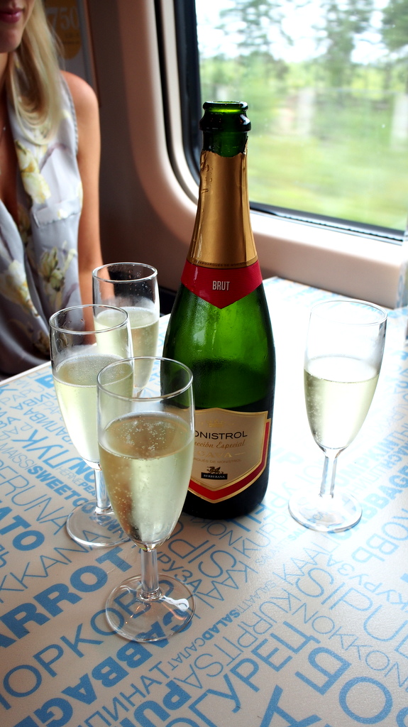 Allegron ravintolapalvelut yllättivät allekirjoittaneen. En ole mikään suurin ravintolafani mitä tulee junamatkustamiseen mutta Allegrossa palvelu pelasi ja matka sujui todella mukavasti myös ravintolavaunussa. Testiin pääsi kana caesar-salaatti, jonka hinta oli 8,90€. Annokset tarjoillaan pöytiin kunnon lautasista, eikä muovilautasia tarvitse odotella eteensä. Meillä oli paikat eri suunnissa junaa, joten ravintolavaunu oli hyvä kohtaamispaikka. Mikäli istutte vierekkäin ja haluatte juhlistaa matkanne alkua vaikka lasillisella kuohuvaa, onnistuu se omalla paikalla sillä koko Allegro on anniskelualuetta. Ravintola suljetaan rajanylityksen ajaksi, joten vierailua ei kannata ajoittaa juuri ennen rajalle saapumista.