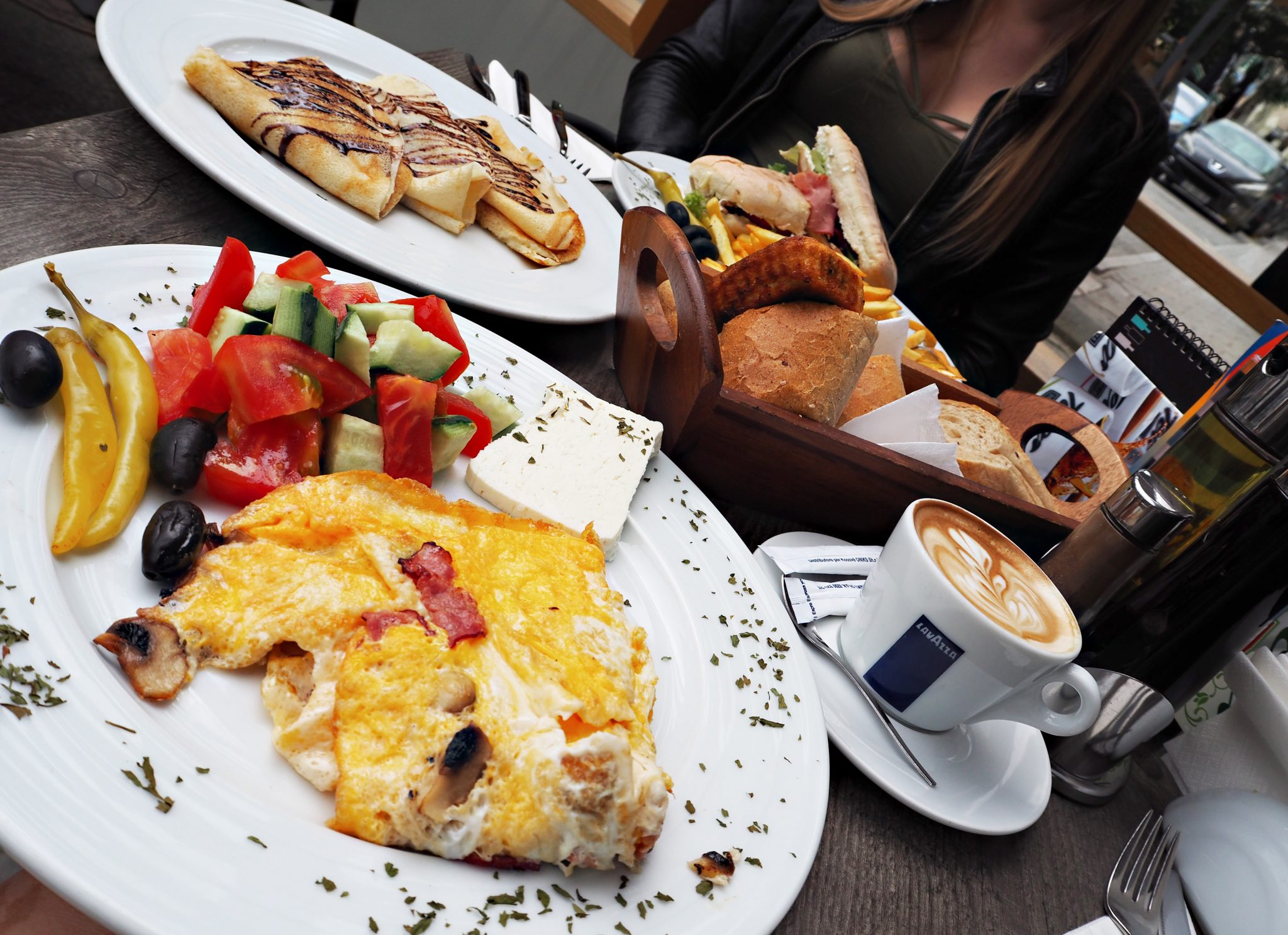 Koska kosovolaisilla ravintoloilla ei tuntunut olevan verkkosivuja mistä tarkistaa menuja tai aukioloja, eikä Mapsista löytyneet aikataulutkaan pitäneet aina paikkaansa, turvauduimme arkipäivinä löydettyyn ja turvalliseen Mery’s Coffeeseen, joka aukesi joka päivä silloin, kun Google kertoi. Aamupala Mery’sillä toimi hyvin ja tarjolla oli muutamia makeita ja suolaisia.