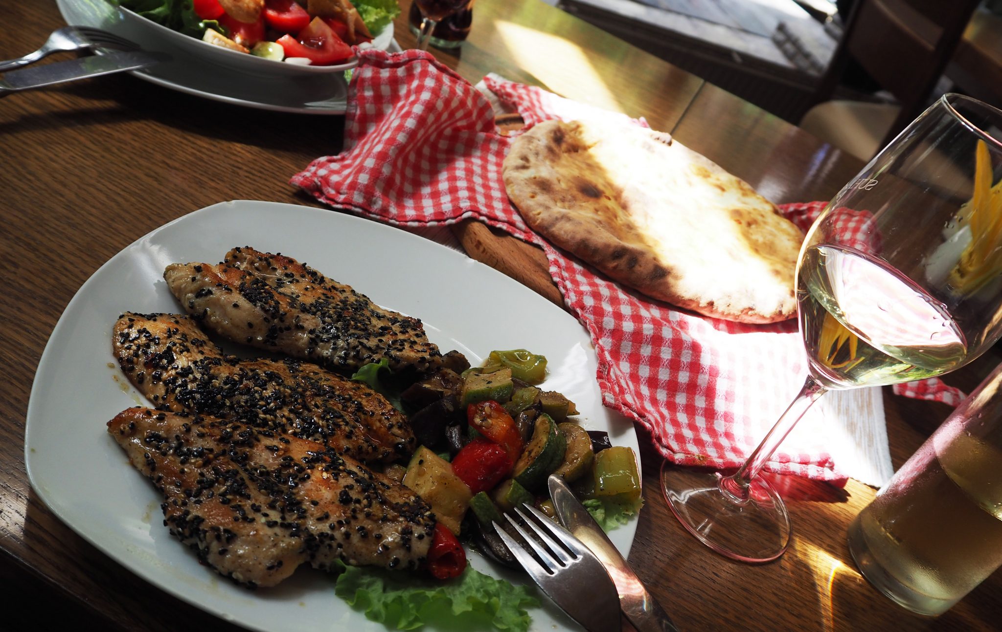 Pishatin löydät Shpija Vjeterin kanssa samalta kadulta. Pishatin sisustus ei ole kummoinen, mutta ruoka oli huimasti parempaa kuin Shpijassa. Pishat mietitytti aluksi hieman, sillä ravintolassa tarjolla oli tarjolla vaikka mitä, niin klassisista hampurilaisista perinteisiin albanialaisiin herkkuihin, mutta onneksi istahdimme ravintolaan, sillä söin siellä yhden maukkaimmista kanoista ja leivistä ikinä. Seesaminsiemenillä kuorrutettu kana ja paikallinen uunituoreleipä, oh oh nam, olinpa aika ruokataivaassa näin yksinkertaisista asioista!