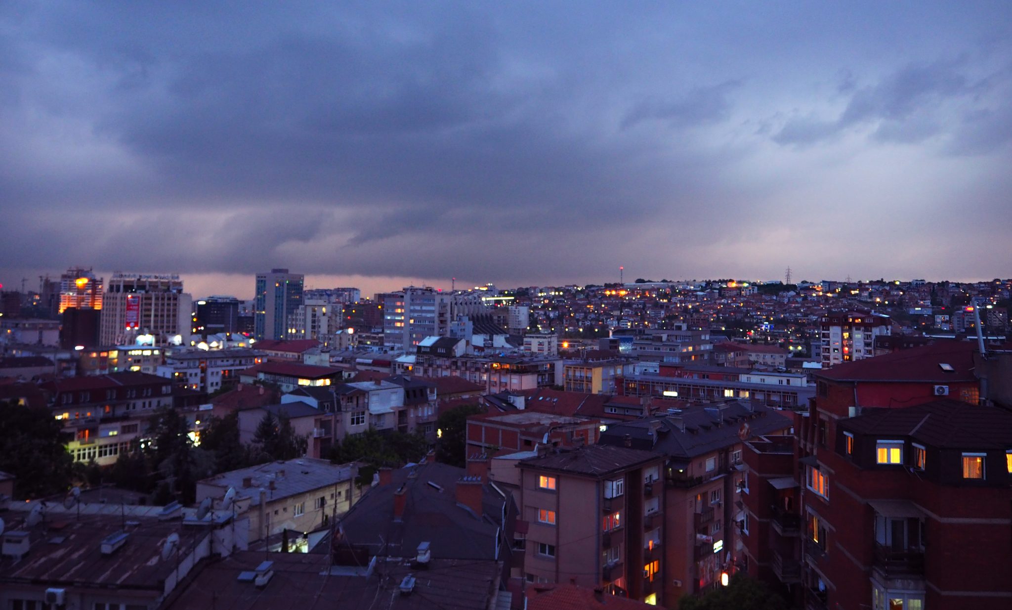 Olimme jo viimeisenä iltana oppineet, että nyt jätetään jaettavat alkuruuat väliin ja siirryimme suoraan pääruokaan, josta sitten jälkiruokaan. Tämä oppi kannatti ja poistuimme ravintolasta sopivan täynnä. Olimme tehneet Heraan pöytävarauksen, mutta ravintolassa ei ollut klo 19 ketään meidän lisäksemme – saimme siis nauttia Pristinan yläilmoista aivan eksklusiivissa tunnelmissa. Vaikka ravintola sijaitsi vain 8. kerroksessa, sen terassi ylsi silti Pristinan kattojen yläpuolelle.